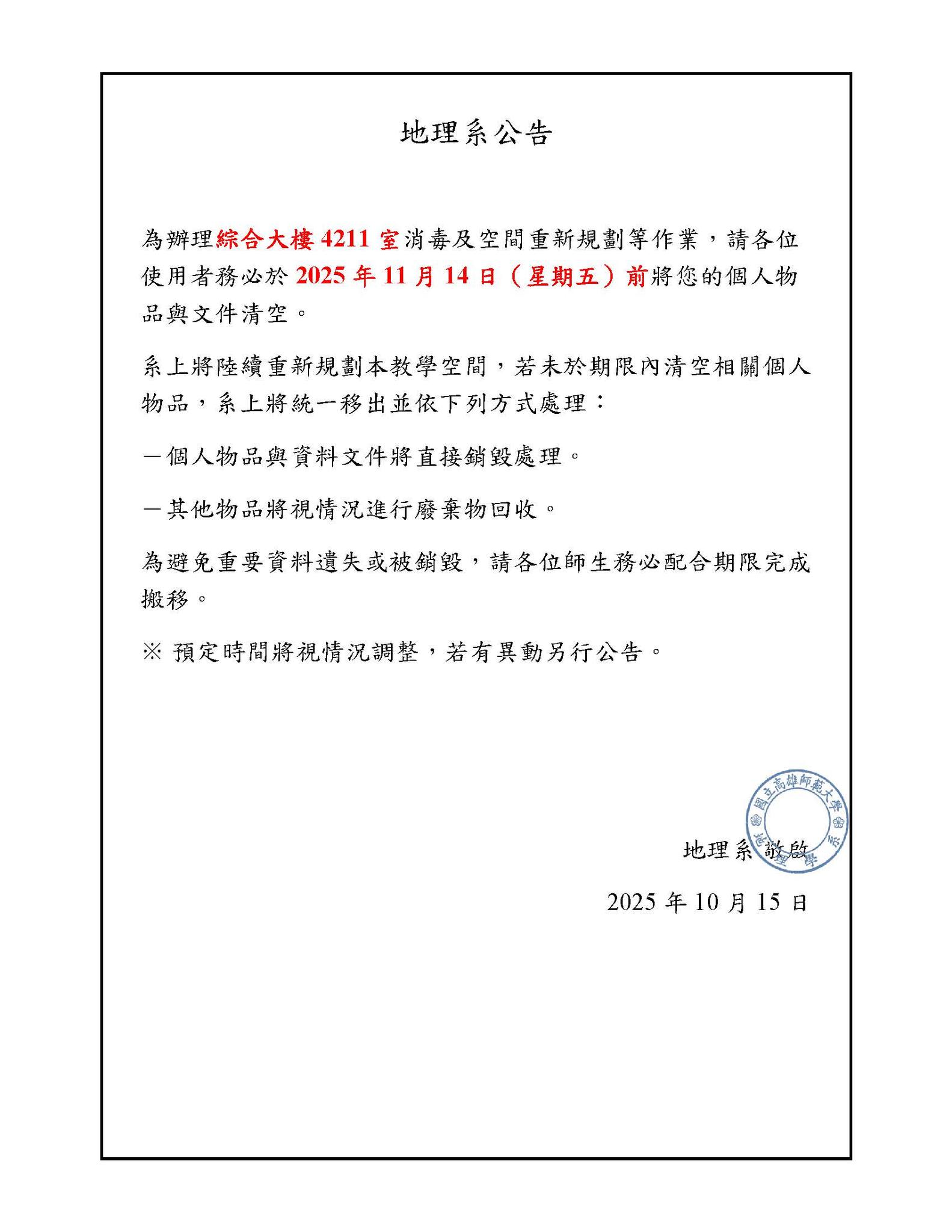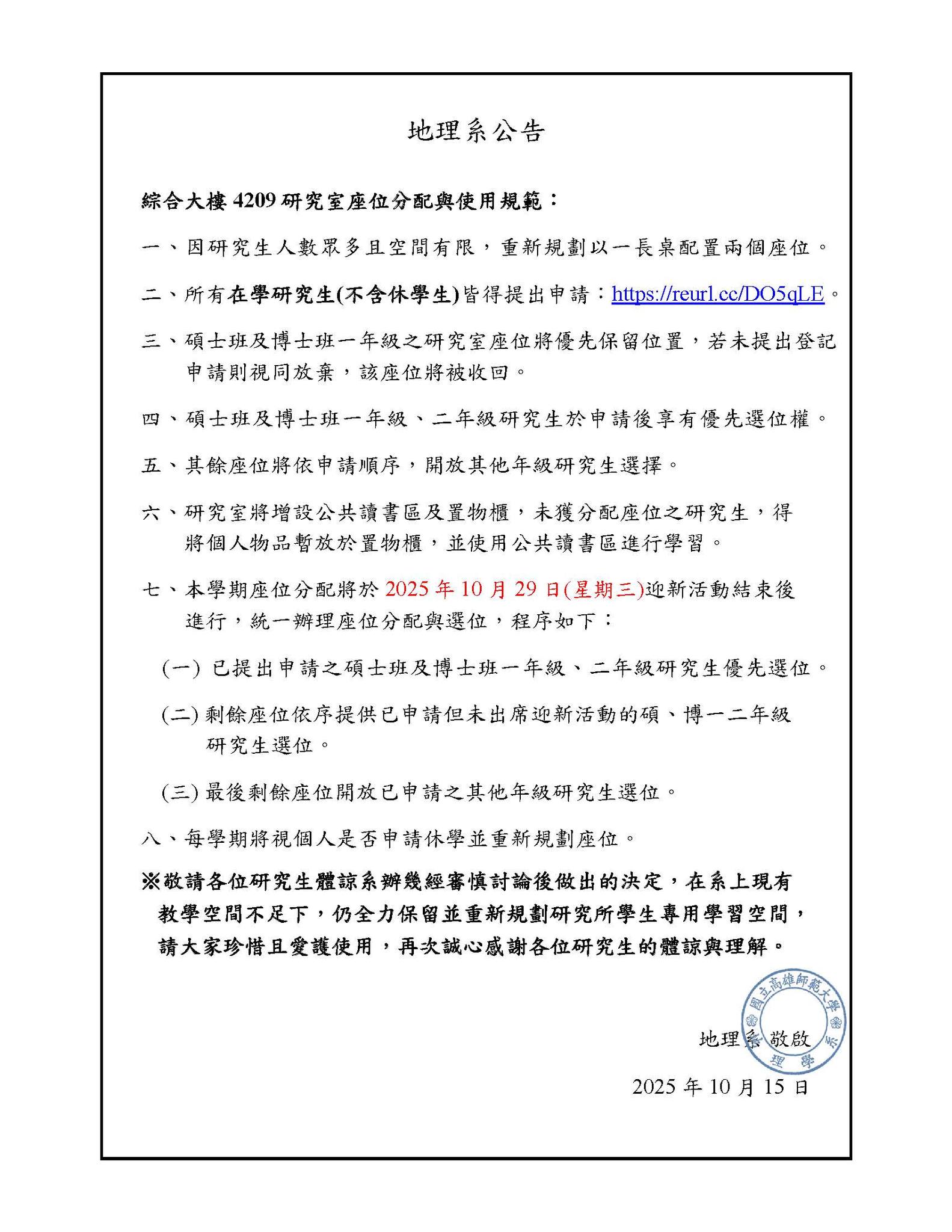 碩博研究室異動通知